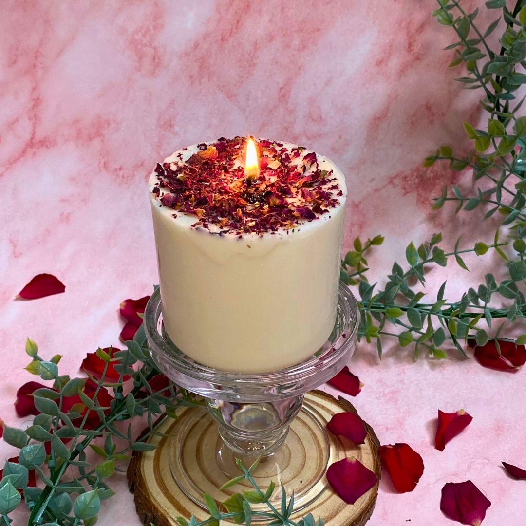 Medium Scented Soy Wax Candle With Rose Petals box of 6